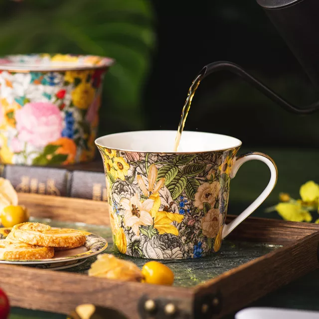 This ceramic coffee cup isn’t just a drinkware piece—it’s a reflection of your taste. The elegant silver details and gentle camellia motif make it a delightful companion for your morning rituals or afternoon relaxation. Feel the serenity of an English afternoon in every pour, and enjoy your favorite beverage in a cup that combines style, comfort, and grace.