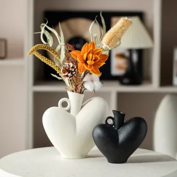 Matte Heart Ceramic Vase for Dried Flowers & Modern Abstract Home Decor
