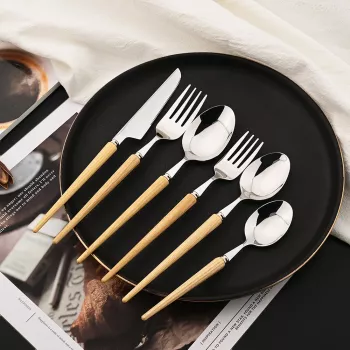 Stainless Steel & Wood Handle Flatware Set – 4/5/6 Piece Cutlery Collection